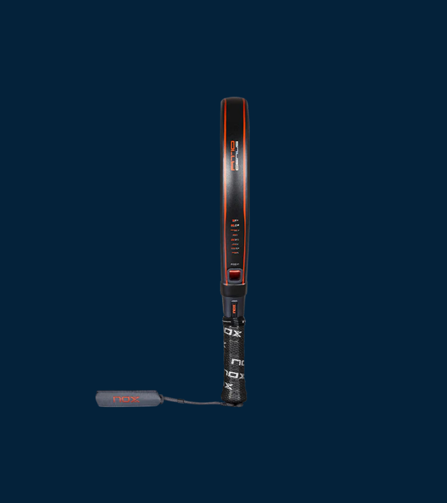 - مضرب مصنوع يدويًا باستخدام موزارت كاتاماركا مع وجه من ألياف الكربون المطلية بالألمنيوم وطبقة نهائية خشنة مزدوجة (سداسية ثلاثية الأبعاد في المنتصف وملمس رملي في الباقي) يحسن التحكم ويسمح لك بإضافة المزيد من التأثير إلى الكرة.